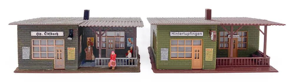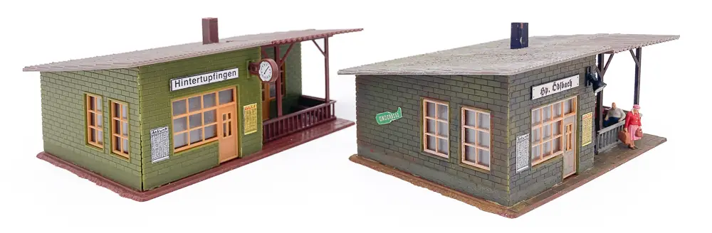 Am Beispiel des Haltepunkt „Hintertupfingen“ und dem Stellwerk „Waldbrunn“ der Firma Faller möchte ich den Unterschied zeigen, den ein fabrikneuer Gebäudebausatz zu einem patinierten und mit zusätzlichen Details ausgestattetes Gebäude ausmacht. Dazu habe ich von „Hintertupfingen“ zwei Bausätze gekauft, einen nach Anleitung zusammen gebaut, den anderen zusätzlich „gesupert“, wie man in der Szene sagt. Vom Stellwerk habe ich nur einen Bausatz erworben. Ich denke aber, dass die Bilder dennoch genügend aussagekräftig sind.