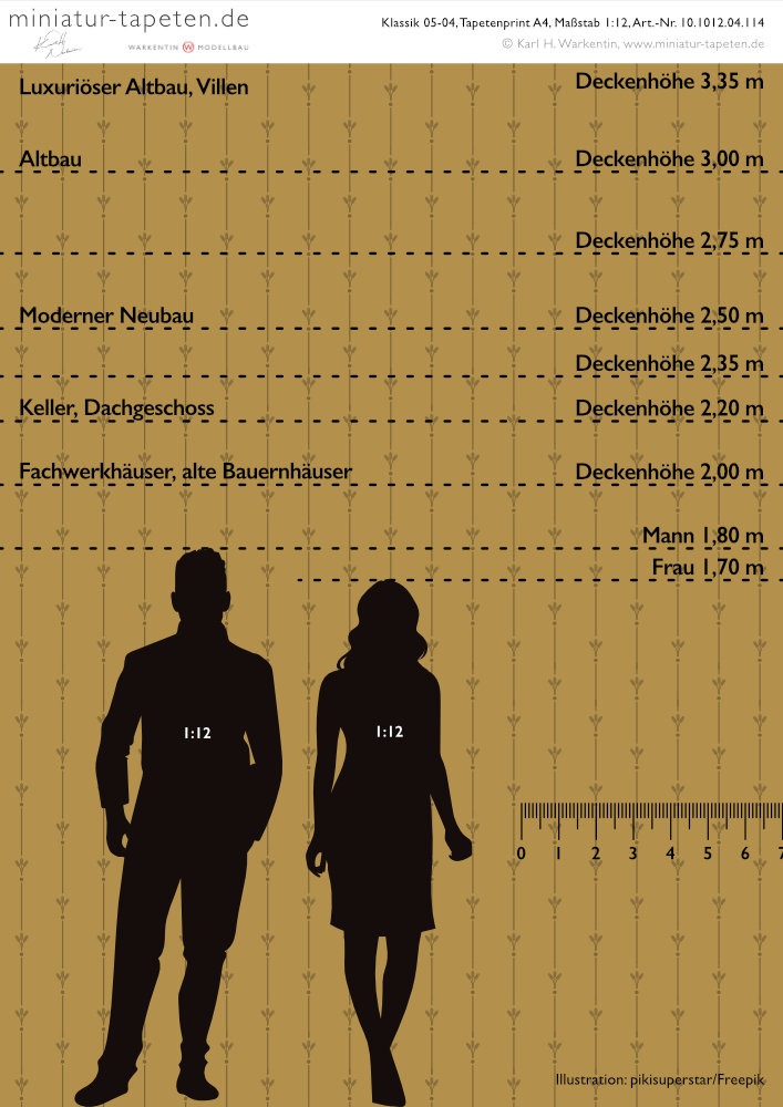 Die Miniatur-Tapeten von miniatur-tapeten.de werden auf hochwertiger, selbstklebender, wasser- und abriebfester Vinyl-Folie mit matter Oberfläche im Format DIN A4 für die Maßstäbe 1 : 12, 1 : 24 bzw. 1: 48 im Format DIN A4 mit professionellen Epson-Großformat-Druckern und K3-Pigment-Ink gedruckt. Auf Anfrage können auch andere Maßstäbe oder Miniatur-Tapeten im Format DIN A3 oder größer geliefert werden.